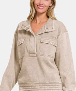 Make a fashion-forward statement with this Acid Washed Half Snap Fleece Sweatshirt, combining style and comfort effortlessly. The acid wash finish gives this sweatshirt a trendy and unique look, perfect for adding a touch of edginess to your outfit. Featuring a half snap closure, this sweatshirt offers versatility in styling and easy wear. Crafted from cozy fleece fabric, it provides a soft and comfortable feel, ideal for everyday wear. Elevate your casual wardrobe with this modern and stylish sweatshirt that exudes a blend of fashion-forward design and comfort. Stand out in style with this eye-catching piece that showcases a contemporary twist on a classic sweatshirt silhouette, making it a must-have for fashion enthusiasts.